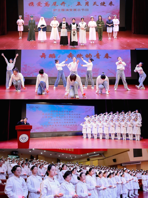 从护士服的演变呈现护理人的精神传承,日前,“梦想起航,光辉传承”上海健康医学院2024年国际护士节传光授帽活动在北苑1号楼400人报告厅举行,近500名师生参加活动。