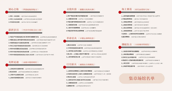 完成5个主题或30个场馆集章,可领取“红印精英”上海红色文创一份。