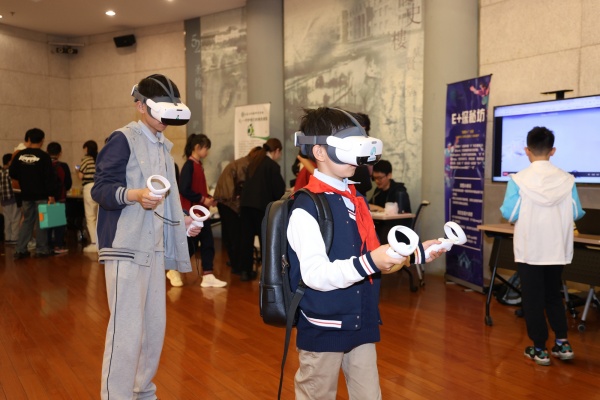 来自云南寻甸县仁德一小的马臣淏、张航、廖巧欣三位同学受邀在论坛上他们展示了自己的发明——“智能书包”,并获得了本届论坛银奖。就在半年前,来自华东师范大学的哥哥姐姐们在他们所在的学校开展了“数字支教”,通过云端为他们带来了“编程伙伴”“聊天机器人”等创新类课程。据悉,华东师大教育学部组织大学生社团、学生科创团队,为中小学生开发了20余门创新创造类课程。论坛展示交流开始前,华东师大面向中小学生组织了一场别开生面的“创社展”,邀请面向中小学创客教育的创业企业,为青少年提供沉浸式体验科技前沿的游园活动。