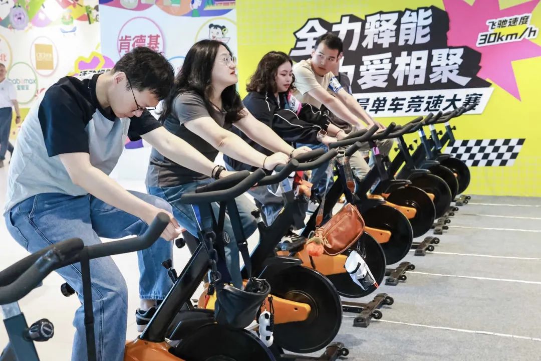 “加油加油,灯已经亮了一半了,再踩快一点!”另一边,一排“动感单车”排列整齐,每两辆车前围绕着一圈小灯泡,男女嘉宾们正在不断“蹬车”,将动能转化为电能,最终点亮所有能量灯带。