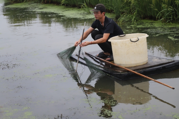 “从小,周旋就喜欢钓鱼、钓虾,他还自己用竹竿绳子自制钓具。”周旋的父亲周玮说。钟情鱼虾蟹,怀揣水产梦的周旋,研究生选择到上海海洋大学深造。在导师吴旭干教授的带领下,周旋来到洪林科研基地参与研究工作。