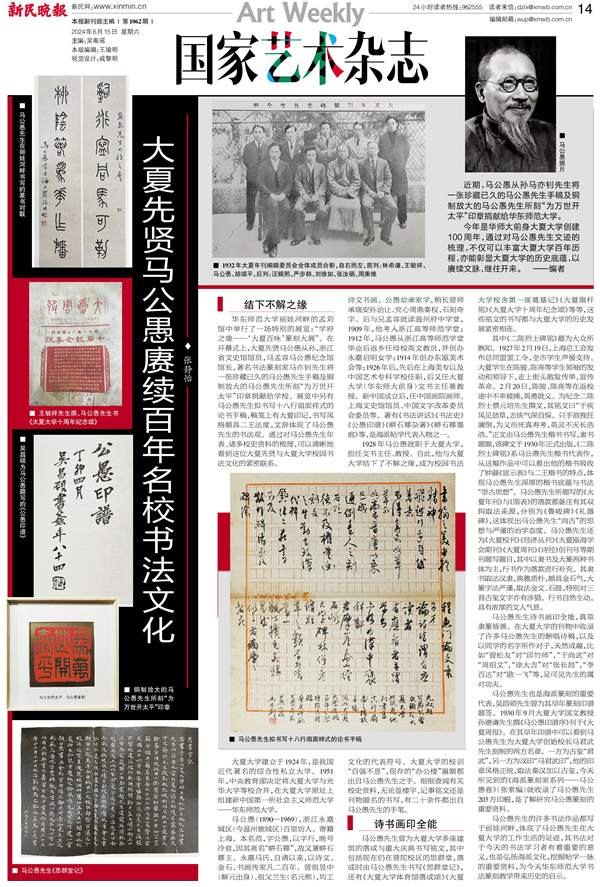 今年是华师大前身大夏大学创建100周年,通过对马公愚先生文迹的梳理,不仅可以丰富大夏大学百年历程,亦能彰显大夏大学的历史底蕴,以赓续文脉、继往开来。