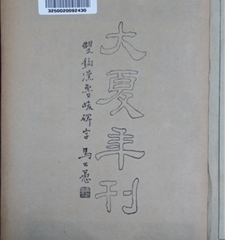 马公愚先生所题写的《大夏年刊》与《图表》的落款都备注有其双钩取法来源,分别为《鲁峻碑》《礼器碑》,这体现出马公愚先生“尚古”的思想与严谨的治学态度。马公愚先生还为《大夏校刊》《经济丛刊》《大夏瓯海学会期刊》《大夏周刊》《诗经》创刊号等期刊题写题目,其中以隶书及大篆两种书体为主,行书作为落款进行补充。其隶书取法汉隶,典雅质朴,颇具金石气,大篆字法严谨,取法金文、石鼓,特别对三晋古玺文字亦有涉猎。行书自然生动,具有浓厚的文人气息。