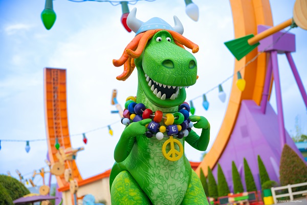 在迪士尼·皮克斯玩具总动员主题园区的玩水互动体验区,游客们有机会偶遇来自动画电影《玩具总动员》系列的派对恐龙抱抱龙,与造型时髦的他一起体验后院夏日“玩”水派对。