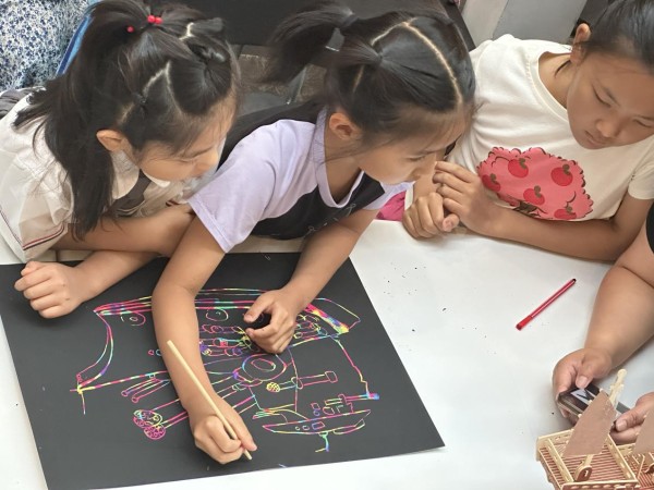 活动伊始,前往签到的孩子们领取了空白帆船,利用画笔绘制出属于自己的帆船模型,满怀期待地开启今日的公益课之旅。