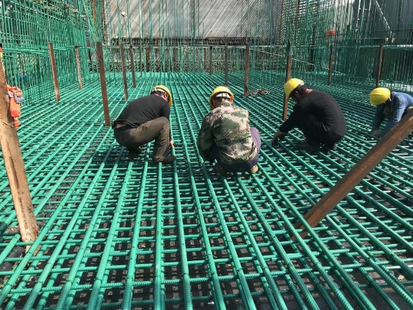 图说:工人在现场编织环氧涂层钢筋 采访对象供图(下同)