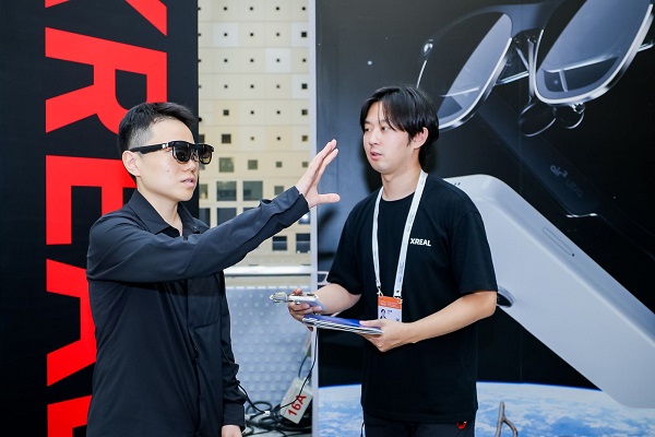 图说:观众在XREAL展台体验空间计算 采访对象提供(下同)