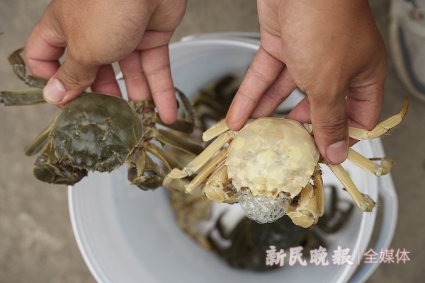据介绍,“白玉蟹”大规格蟹比例高,在9月到11月,它的生长速度快。待到今年“秋风起”,“白玉蟹”就会大量上市。“‘白玉蟹’基本能长到五六两,至于它为什么品尝起来更甜,相信到今年秋天团队也能通过实验数据解答。”吴旭干告诉记者。
