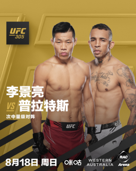 时隔两年,中国选手李景亮强力回归八角笼!近日,UFC终极格斗冠军赛官方发布消息,UFC305数字赛将于北京时间8月18日在澳大利亚珀斯进行,中国次中量级选手李景亮因伤病阔别赛场两年之后,将首次回归MMA顶级赛场,与巴西选手卡洛斯∙普拉特斯展开一场三回合的强势对决。