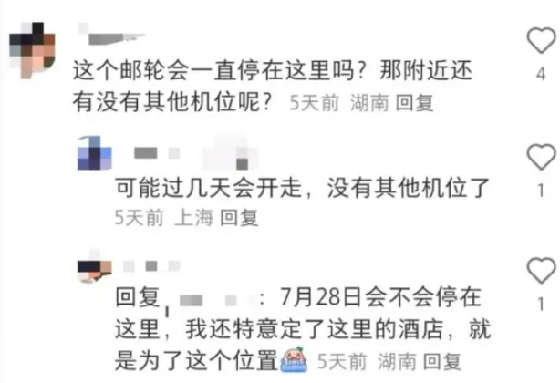 更有游客表示:“三天前(邮轮)就在了,今天回家了,告诉我它开走了?”