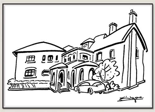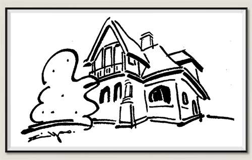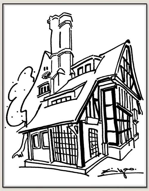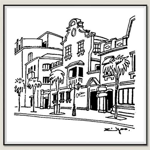 无论是画“智慧快餐”,还是画老房子,我都崇尚简约。如何实现?很简单,做减法。我每次打好草稿,如果一张草稿上有20根线条,那么我正式勾线的时候,可能就会把线条减少到10~12条,有时甚至更少。减到不能再减为止,只要这幅画能反映出我所画对象的特点就可以了。在这个过程中,除了“简约”,我还会运用“夸张”等艺术表现手法,以实现最终的目标——画出老房子的灵魂和神韵。