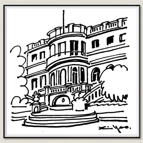 比如,画邬达克旧居,我画的斜顶会比建筑本身的斜顶更斜,我画的烟囱会比现实中烟囱的高度更高。这就是“夸张”。这幢旧居的窗密密麻麻,我就有序地做了减法。大家如果感兴趣的话,可以拿我的作品和建筑的照片对照着看。画老房子,我还有一条心得——要把老房子当成一个“人”来看。像邬达克旧居,我就当它是一位老爷爷。既然是老爷爷,你就要画出他的年纪,画出他的表情和肌理。老房子上的岁月痕迹、斑斑驳驳甚至残缺不全,都是画家应该捕捉的。用上海话来说,就是要把这栋房子的“腔调”画出来。把描摹的老房子当人来看,人有表情、有灵魂,房子亦然。(郑辛遥)