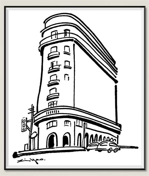 上海素有“万国建筑博览会”之称。我从小生长在石库门弄堂,十分喜欢上海的老建筑。2001年,上海某纺织厂拆除,利用场地建了一家饭店。饭店的老总蛮有创意,做了108间包房,每间包房都以一条上海马路的名字来命名。他邀请我给每一条马路画一幅漫画,作为房间标识。我跑到书店,把当时能找到的介绍上海老建筑的书统统买回来。从那时起,我从欣赏、学习老房子变成系统创作老房子漫画,从一名纯粹的“老房子爱好者”变成了“业余研究者”。