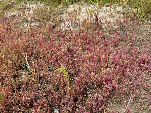 图说:盐地碱蓬是苋科碱蓬属一年生草本植物,生长于海滨、湖边、荒漠低处盐碱地上