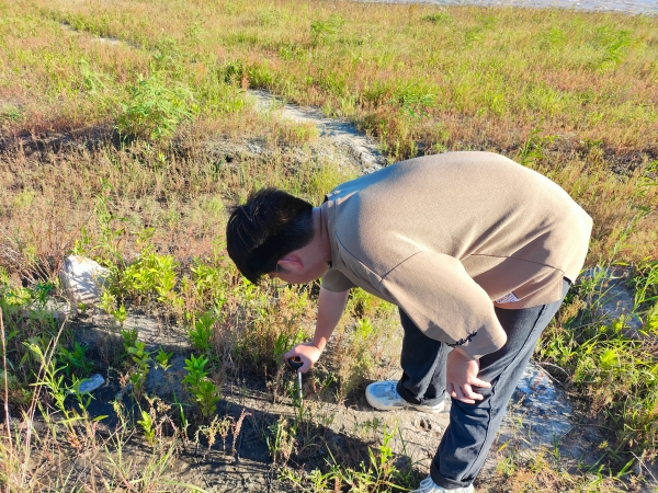 今年暑假,实践团队还迎来了位新成员:从生物工程专业跨考来的研一新生王静雯。第一回跟随小伙伴前往样地,尽管有心理准备,但之前从未将植物作为研究对象,她并不知道哪些是适合采样的对象、采样时要注意什么。好在同伴们及时科普,帮助她一点点熟悉这些娇小但生命力极强的植物。“相信在不久的将来,这片盐碱地将成为生态修复的范例。”如今的王静雯已是信心满满。