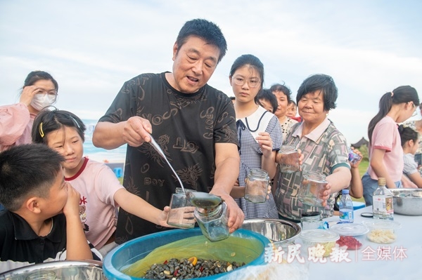 图说:亲子活动中,参与者们给腌制好的黄泥螺调味增鲜。新民晚报记者 陶磊 摄