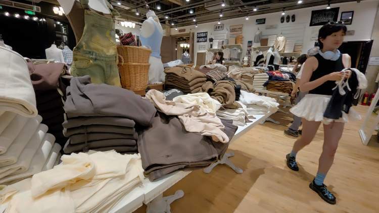 “我感觉这些衣服的溢价在上海来说,已经是相当能接受的范围了,一圈看下来,比BM、HM都便宜,我看最贵的200多元,所以本来是冲着优雅的环境和高颜值的营业员而来,没想到还是买了5、6件衣服配饰,一共花了700多元。”小周和两位小姐妹一起约着来打卡,买完衣服坐在户外的椅子上休息,她向记者展示了她的购物“成果”,上衣、牛仔裤、衣服配饰,都是年轻时尚款。