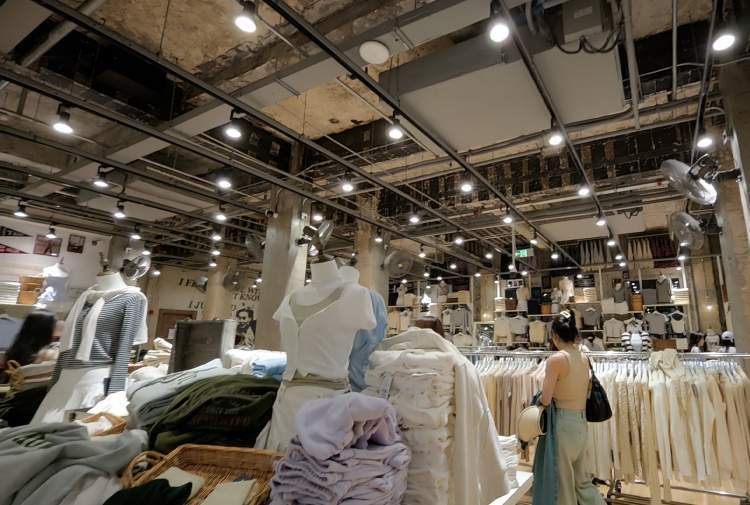 据了解,入驻的服饰品牌名为Basement FG,首创于北京的潮流仓储式品牌,这家店在上海是首家。作为面向95后及00后年轻受众的服装品牌,风格上主打时尚、街头、复古、休闲风格,单价也并不高。不过,这里的衣服多为one size(只有一个尺码),极瘦或稍胖人士或许难以找到尺码合身的衣服。