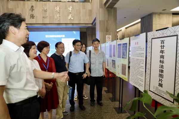 图说:与会者参观百廿商标法律图片展 上海商学院供图