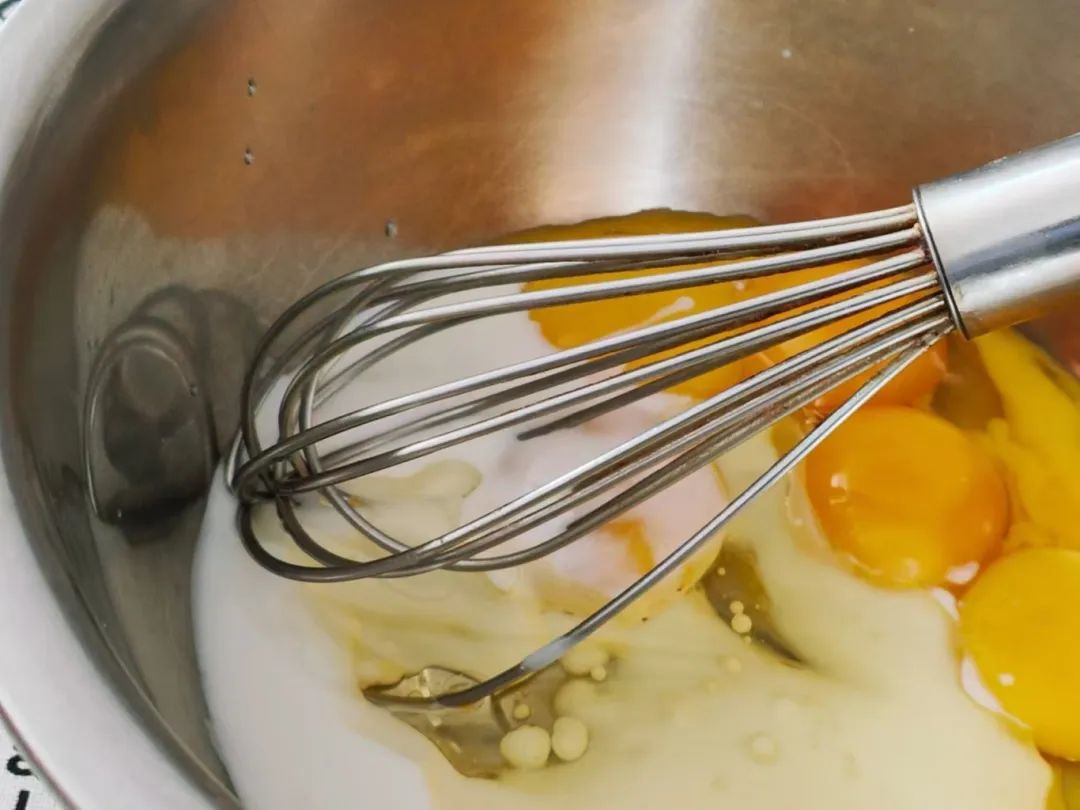 1.将蛋清蛋黄分离,蛋黄、酸奶、玉米油一起搅拌均匀。
