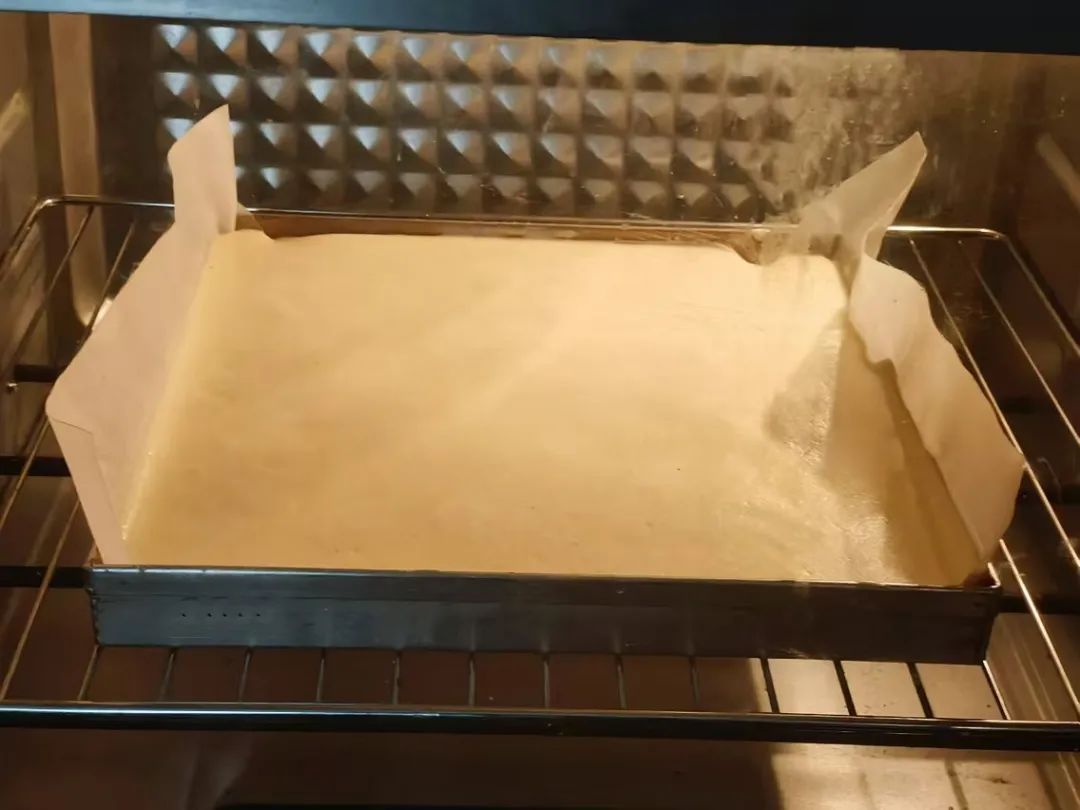 4.烤20分钟左右,冷却后斜着切去两个边。