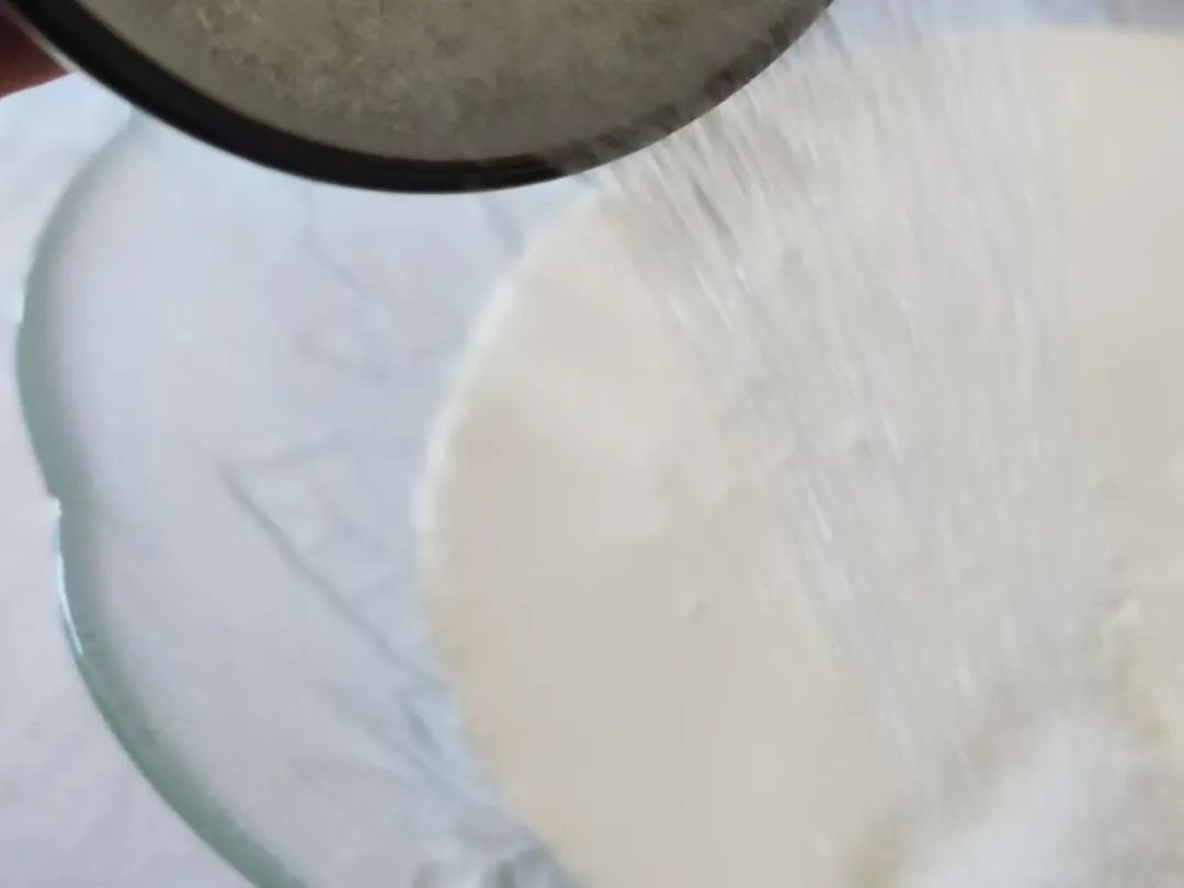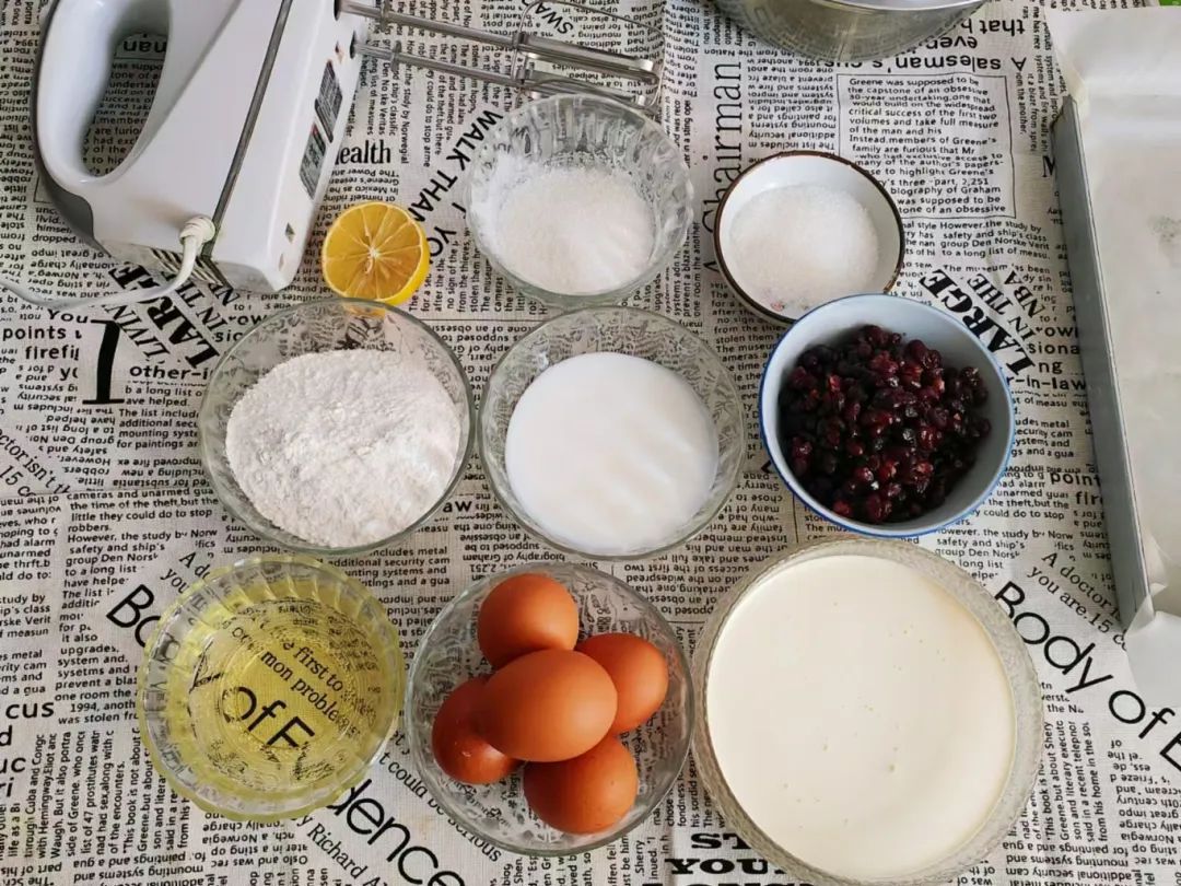 食材:鸡蛋5个、低筋面粉75克、原味酸奶75克、玉米油50克、白砂糖50克、淡奶油250克、蜜豆130克、白砂糖15克、柠檬汁数滴