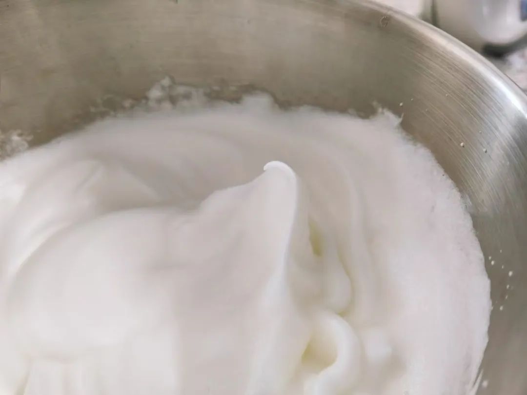 2.筛入低筋面粉搅拌均匀,蛋清加白砂糖和数滴柠檬汁,中速打发至弯勾状态。