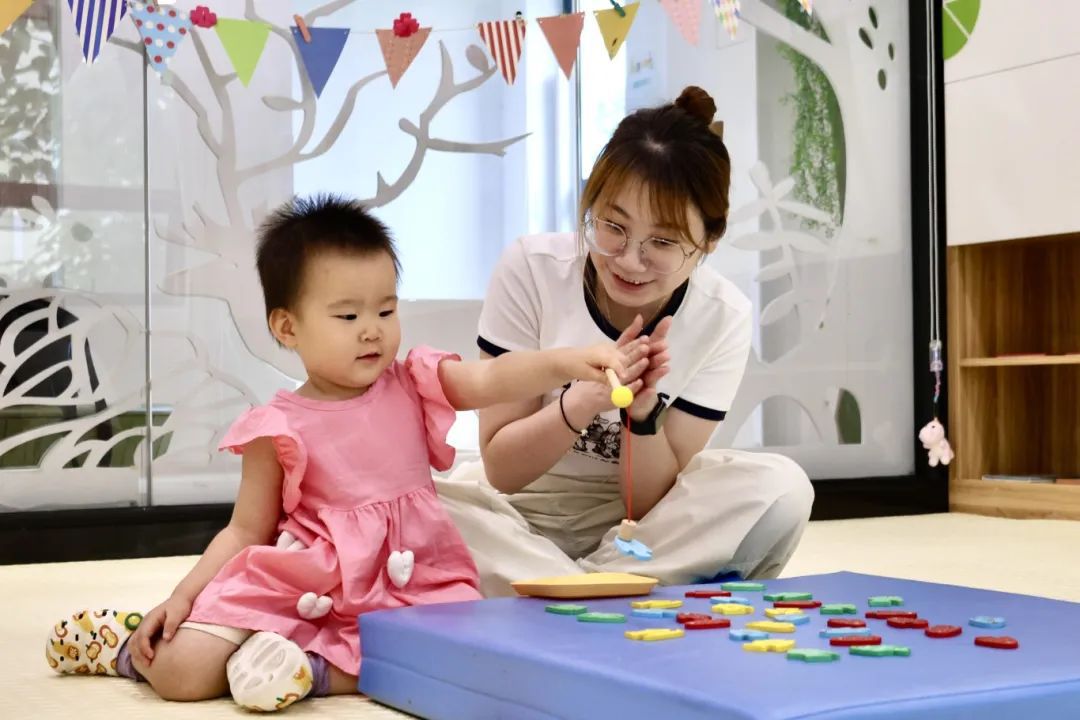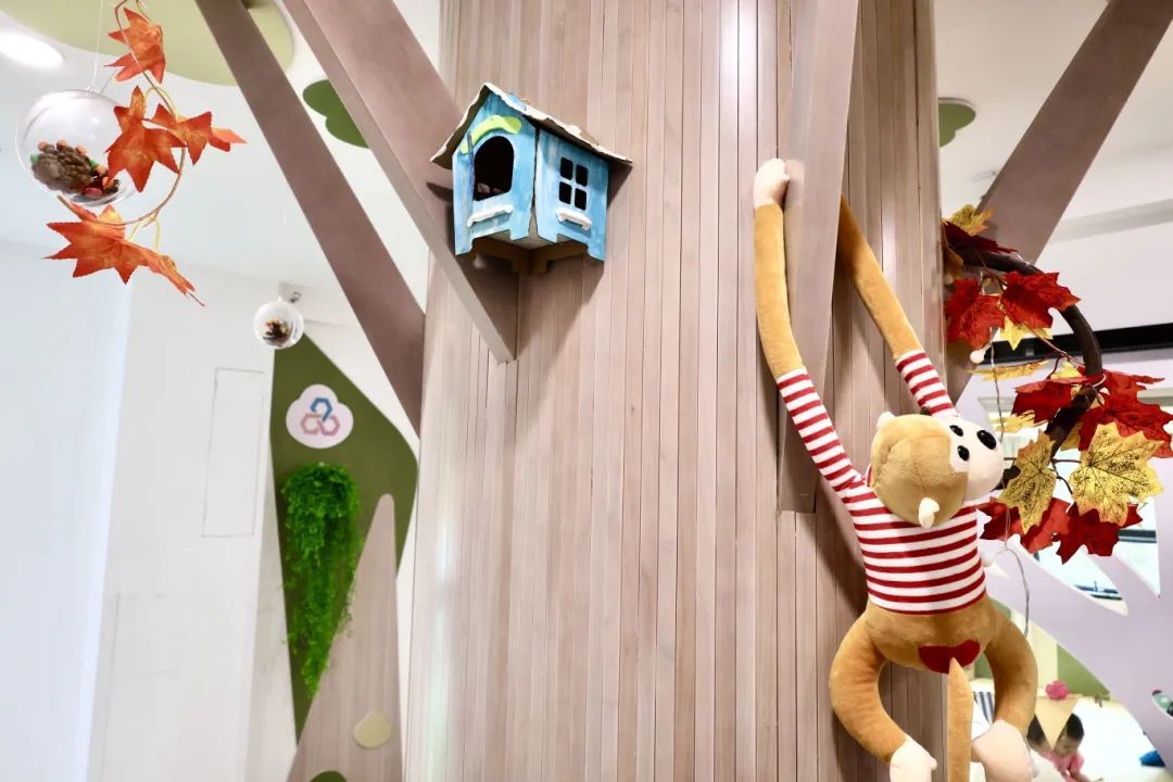 来到宝宝屋,晶晶适应得很快,在感统区的平衡木、滑滑梯上开心地爬上爬下,听老师讲故事,一起做游戏。这些游戏不仅让晶晶感到开心,也能让她在玩耍的过程中,适应家人以外的陌生人,提高对颜色、形状、生物的认知,潜移默化地培养孩子的学习能力和社交能力。