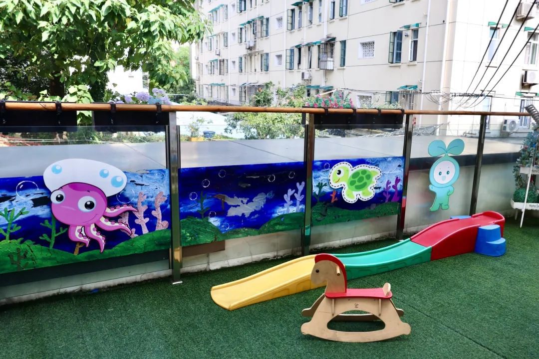 王家堂邻里汇的宝宝屋是徐家汇街道“宝宝屋”的第一点位,设有活动室、游戏室、母婴室、保健室、幼儿盥洗室,其中游戏室空间布局根据1-3岁婴幼儿的年龄特点,精心打造了娃娃家、感统运动区、积木建构区、绘本阅读区等多个功能区域。二楼还有铺设了人工草坪的户外游戏区域,摆放了幼儿“过山车”、小木马等各种玩具。孩子们可以在室内尽情玩耍,也可以到室外享受阳光照射和微风吹拂。
