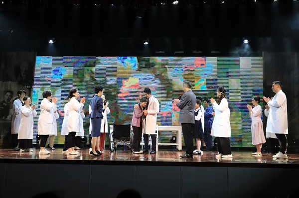 同日,以“共和国勋章”获得者、中国工程院院士、原上海第二医科大学老校长、附属瑞金医院终身教授、上海血液研究所名誉所长、2010年度国家最高科学技术奖获得者——王振义院士为人物原型的原创话剧《清贫的牡丹》再次上演。话剧由医学院牡丹剧社的21名师生医护员工排演,演员中还有2023级临床医学学生,大家亲身演绎大医精诚的故事,传播王院士追求卓越、淡泊名利的精神,为全体新生和交大医学院附属中学、小学学生代表献上了一场视听与心灵双重震撼的盛宴。