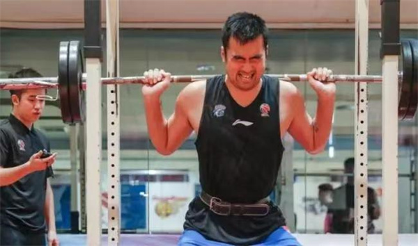 图说:张兆旭在深蹲时腰伤复发 资料图