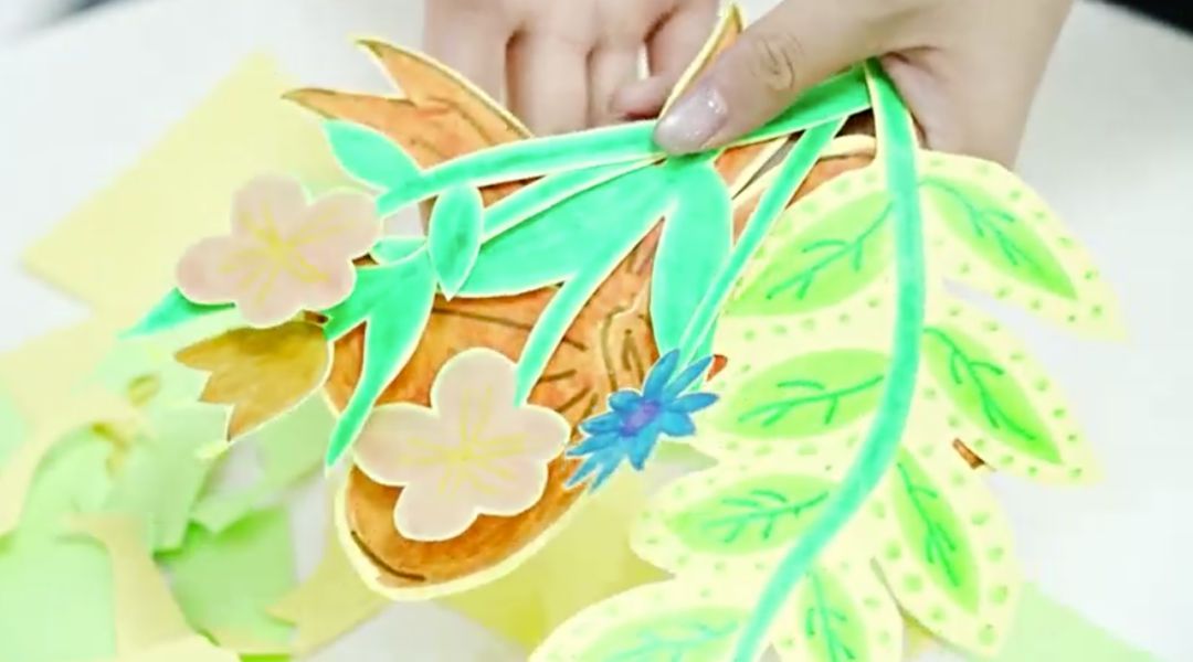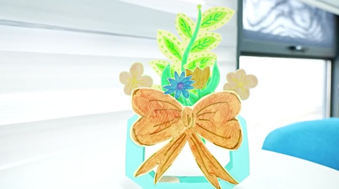 6.在花瓶的顶部划出一个小口子,将剪好的图案插进去,这个桌面摆件就完成了!