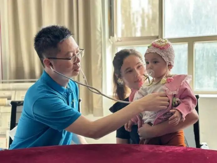 在开展技术帮扶的同时,心脏疾病团队的两位专家还积极对接开展公益慈善项目,深入叶城、泽普、莎车和巴楚等南疆四县开展“上海·喀什先心病患儿助医”项目,对喀什地区先心病的筛查和胸壁畸形患儿进行筛查,并提供免费手术救治。通过慈善项目帮扶更多贫困心血管病患者,帮助他们重获健康。值得一提的是,朱家全主任还专门回访他曾经治愈的仅出生7天年龄最小的患儿,抱着已健康成长至一岁的宝宝,看到孩子童真、开心的笑颜,朱家全也露出了欣慰的笑容。
