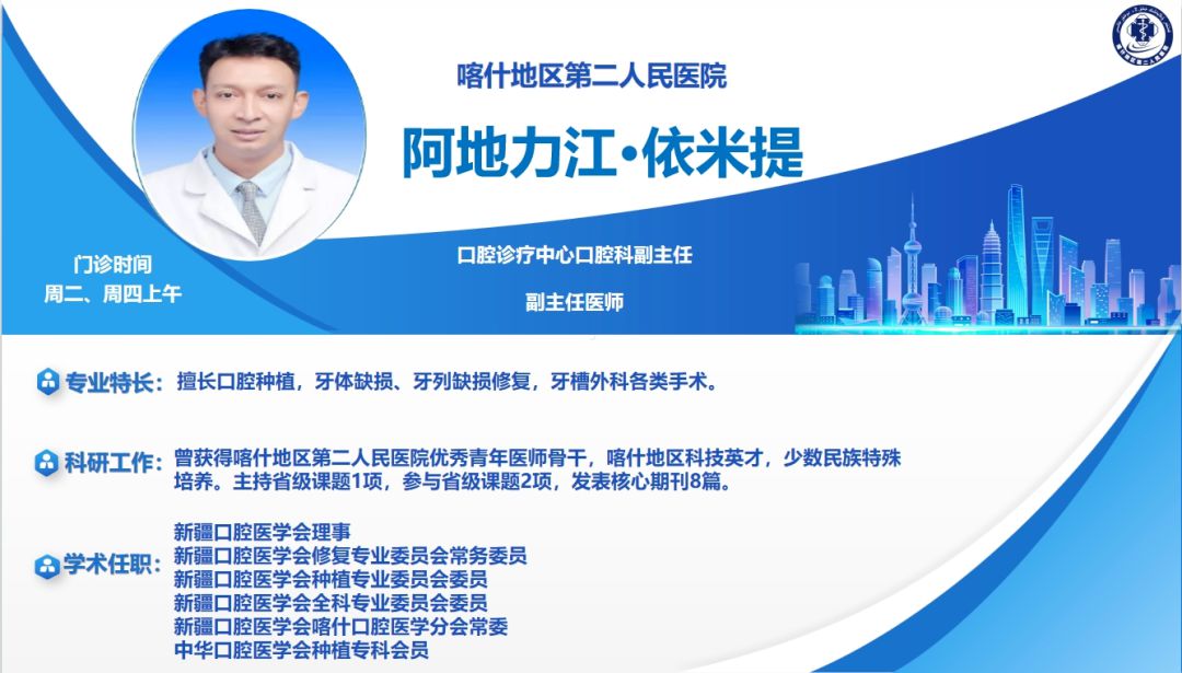 喀什二院口腔诊疗中心拥有完善的治疗设备和资深的医生团队,可为患者提供牙体牙髓、牙周、颌面外科、口腔修复、口腔种植、儿童口腔、口腔正畸、口腔预防、口腔急诊等各专业口腔治疗和多学科全方面诊疗服务。