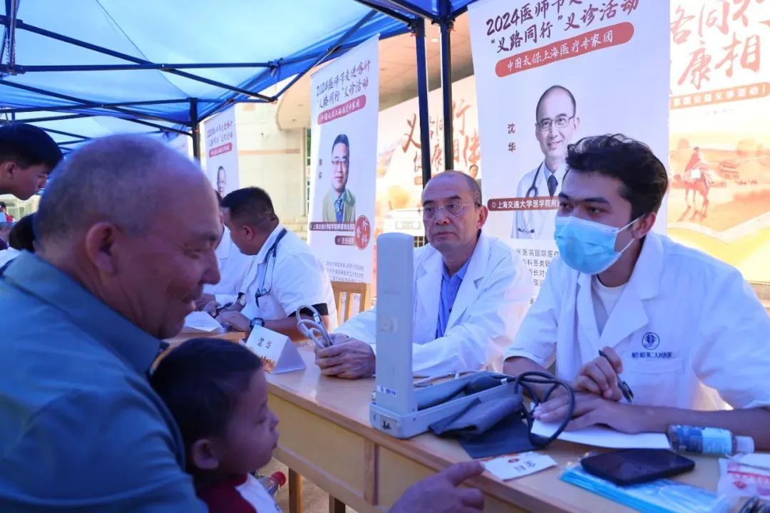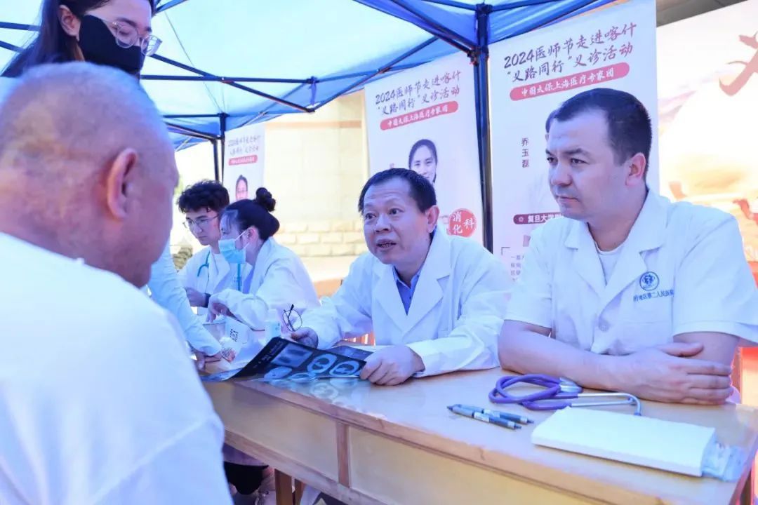 在中国医师节前夕,上海医疗专家团“义路同行·健康相伴喀什站”义诊活动在喀什地区第二人民医院(以下简称“喀什二院”)顺利举行。来自上海交通大学医学院附属瑞金医院、上海交通大学医学院附属第一人民医院等医院的18名专家参加义诊活动。医疗专家团覆盖了全科、心胸外科、普外科、骨科、神经内科、眼科、口腔科等多学科专家骨干力量,他们以丰富的临床经验和精湛的医术,为喀什地区群众提供了全方位的医疗服务,让“预防为主、防治结合”的理念进一步深入人心。