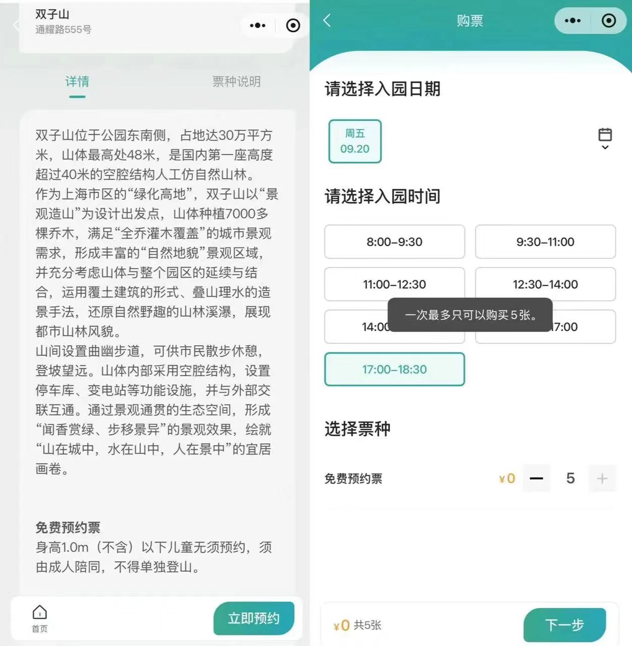 ③每人每次最多支持预约5张票