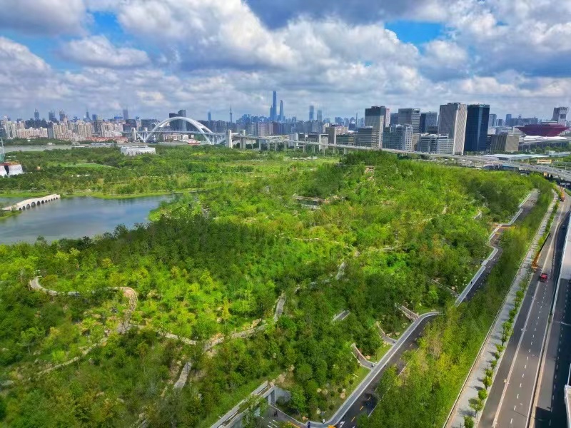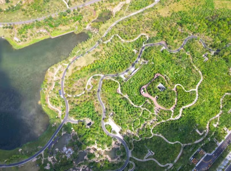 双子山占地达30万平方米,由48米高的主峰和37米高的次峰组成,山体种植7000多棵乔木。