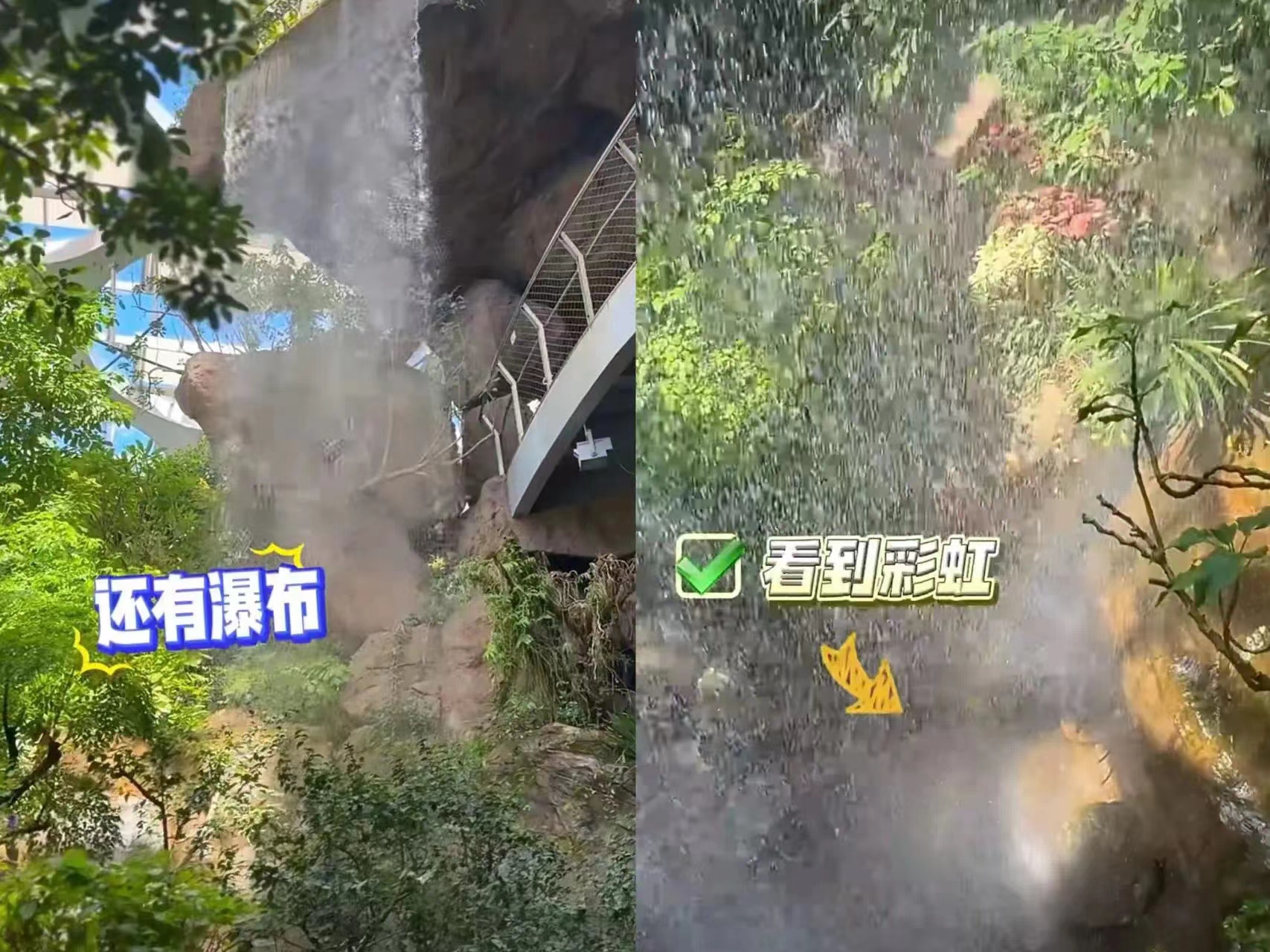 主打热带雨林景观。走过山洞式样的步道,眼前瞬间豁然开朗,酷似《疯狂动物城》开头那一幕。