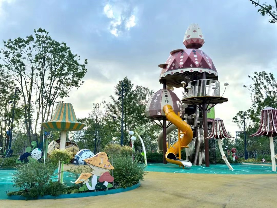 此外,在双子山的山脚下,还有一处【蘑力乐园】,有蘑菇城堡、蘑菇话题、摇摇马,攀爬山坡等主题设施,超适合给小朋友放放电!