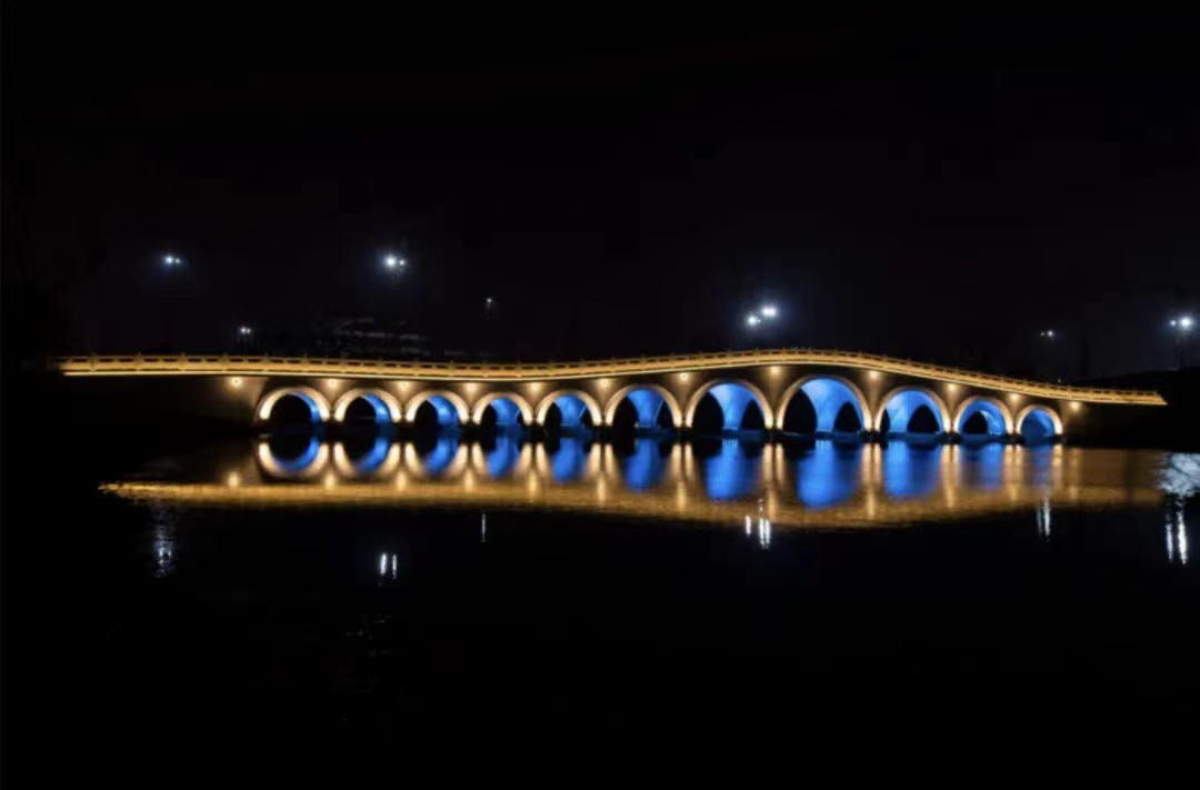 中心湖上的十一孔桥,到了晚上还有灯光,看夜景极美!