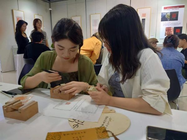 图说:“中华文明史诗·篆刻百咏特展”首场篆刻体验活动