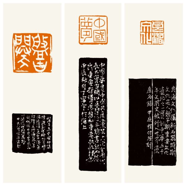 华东师范大学美术学院书法篆刻专业全体学生全程参与了“百印”创作,他们从中华创世神话、文明踪迹、文化遗址、先哲圣贤、朝代制度、著作典籍、科技发明、传统艺术、自然景观、新中国新时代等十大板块内容入手,完成“中华文明史诗百咏”百方篆刻,这套印章白文“盘古开天”起首,以朱文“中国梦”收尾。