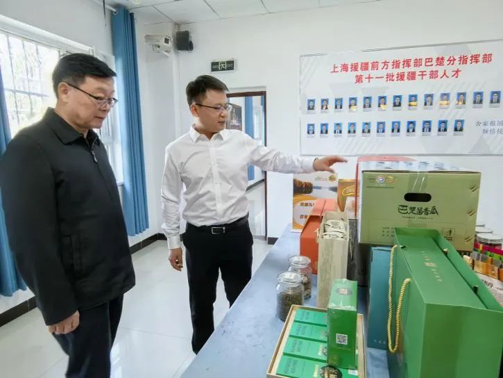 考察调研组随后前往巴楚考察。在上海援建的巴楚博物馆,先后参观了中共一大“伟大精神铸就伟大时代”常设专题展及巴楚历史人文常设展。考察调研组一行对红色文化走进南疆工作所取得的效果表示肯定,在听取托库孜萨来遗址介绍时指出,要继续支持做好当地考古发掘与文物保护。考察调研组还亲切慰问了静安区援疆干部人才,听取了历批次援疆工作开展情况汇报,以及上海援建助力下巴楚丰富的特色商品介绍。