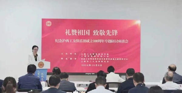 10月9日,上海工会管理职业学院、普陀区总工会联合举办的“礼赞祖国致敬先锋”纪念沪西工友俱乐部成立100周年专题研讨座谈会,在普陀区职工文体活动中心举行。中国工人出版社副总编辑安静,中国机械冶金建材工会副主席关明,上海市总工会党组成员、副主席桂晓燕,普陀区委常委、宣传部部长刘东昌,普陀区人大常委会副主任、区总工会主席姚军,上海工会管理学院党委书记王厚富,上海工会管理职业学院党委副书记、院长李友钟等出席。