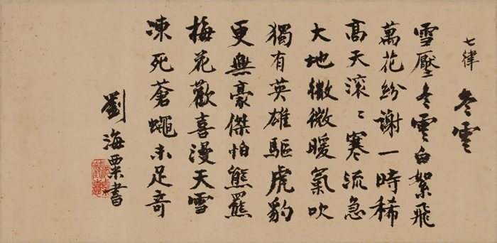 刘海粟是中国新美术运动的拓荒者,中国现代美术教育的奠基人。他的一生可以称之为“传奇”,其磅礴的气象、旺盛的生命力、恢宏的气韵、丰富的学养和高度的自信,有意无意间实现了会通中西的精神。刘海粟对各个书法流派兼收并蓄,而至晚年进入化境,自成一家风貌,在他大气豪放的个性及审美取向影响下,其书法总体上表现为一种拙朴浑厚的阳刚之美,体现出古拙雄强,朴茂寸劲的艺术个性,取自苏轼“当其下手风雨快,笔所未到气已吞”的“百年吞吐”因此成为展览的名称。(新民晚报记者 徐翌晟)