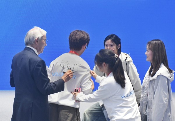 来源:新民晚报 作者:陶磊来自上海海洋大学的志愿者孔名杰在大学期间就对经济学非常感兴趣,一直非常仰慕2010年诺贝尔经济学奖得主、伦敦政治经济学院经济学皇家教授克里斯托弗·皮萨里德斯。今天下午,在世界顶尖科学家青年科学家大会,孔名杰从负责接待教授的志愿者同学那得知教授来参会,特地和朋友前来蹲点,正巧会议讨论环节间隙,皮萨里德斯教授来找他的接待同学,得到了这次珍贵的和偶像零距离的机会,并得到了偶像的签名。见到了偶像,让他感到非常兴奋,更坚定了他在经济学这条路继续深造的决心。
