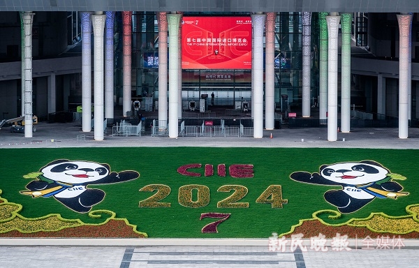 新民晚报讯(记者 裘颖琼)憨态可掬的熊猫“进宝”手握四叶草、脚踏祥云,两侧的“云山”及下方的“梯田花海”“迷宫花园”营造喜庆迎宾气氛,大草坪上新设数字“7”LOGO,由红色的彩叶草打造而成……这两天,作为主场馆门面担当的国家会展中心(上海)南广场景观布置已全面“定妆”,静待第七届中国国际进口博览会开幕。