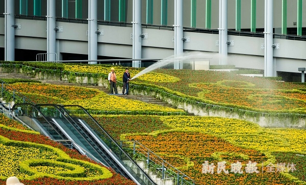 “本届进博会广场景观在保持往年表现手法的基础上,通过增加红色花卉的用花量,对梯田花海区域花卉色彩进行了优化。”上海建工园林集团绿建公司景观设计师杨媛华介绍,今年南广场在绿化布置上,适当减少蓝色、紫色、白色花卉比例,面积从11%降低到8%;增加红色、黄色、橙色花卉比例,面积从75%增加到78%。此外,今年对南广场入口处进行了优化,取消了8根景观柱,开阔了南广场区域视线空间,使整体景观效果更显简洁大气。