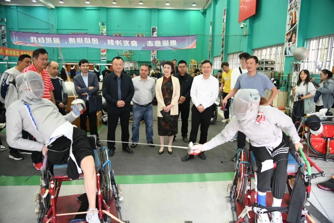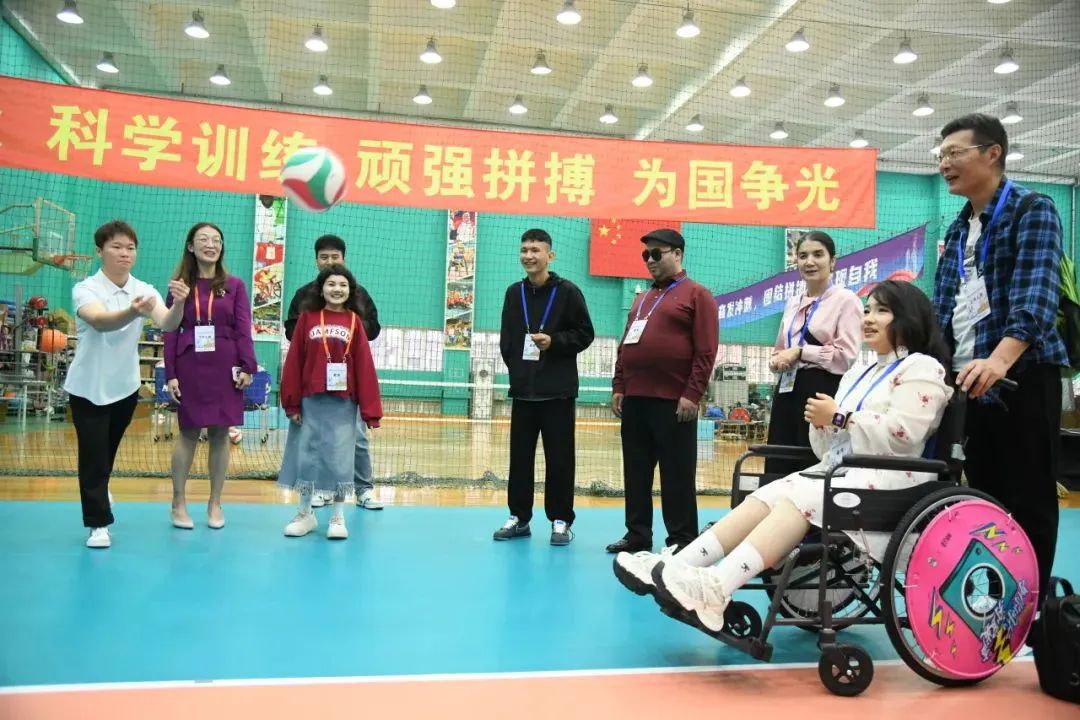 欢迎仪式上,喀什地区优秀残疾人代表参观了上海市文化体育促进中心的荣誉室,观看了轮椅舞表演、轮椅击剑和坐式排球队训练,并进行了排球互动的小游戏。