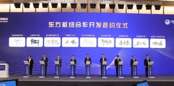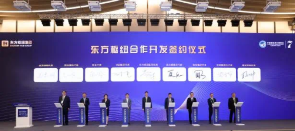图说:东方枢纽集团与16家战略合作伙伴共同举行了合作开发签约仪式 东方枢纽集团供图(下同)